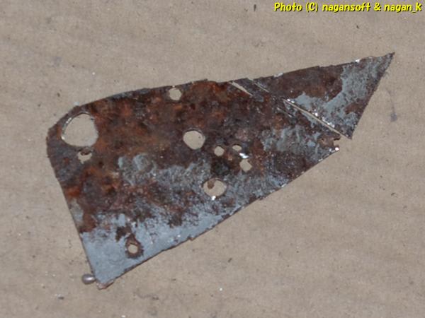 サンドペーパーで削り続けると、下地調整のグレーサフ、そしてこげ茶色のプライマーと思われ、その下に鉄肌と錆びが出現。
