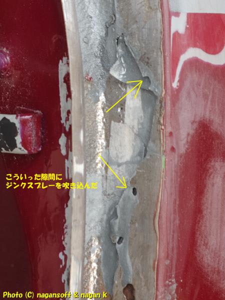 まずは、鉄板合わせ部分の隙間に、ジンクスプレーを吹き込みました。