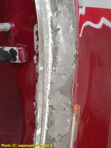 本当は、このフェンダーを切り離して、綺麗に錆を研磨して塗装してから、組み戻すものだろうと思います。
