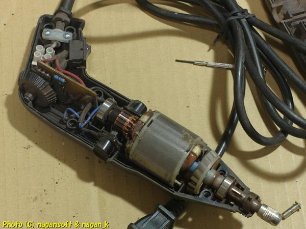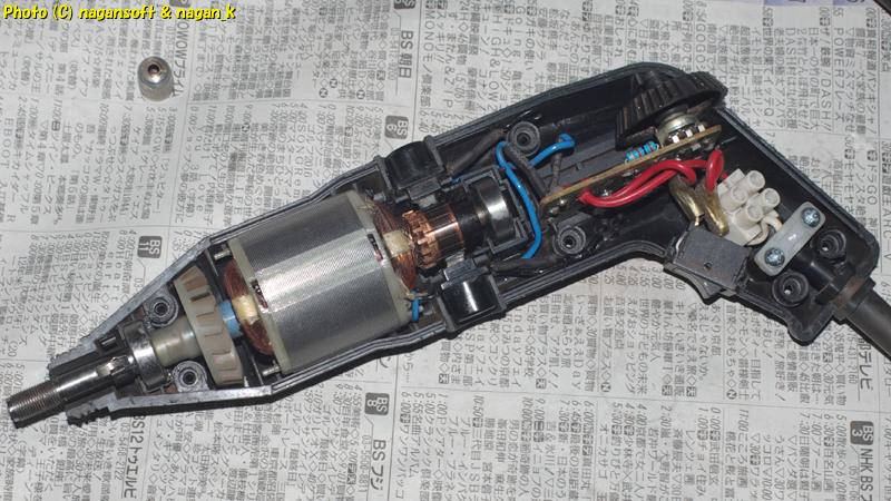 早速、リューターを分解です。ちなみに、今までに3回ほど分解修理しております。ついては、お手軽にサクサクと分解です。