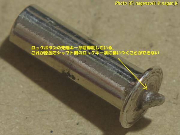 あちゃー、ロックボタンの先端キーが変摩耗してダメです。