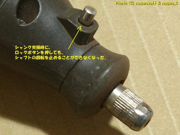 そして、シャンク交換時にチャックの回し止めをするのですが、その回し止めボタンが利かなくなる故障に今回なりました。
