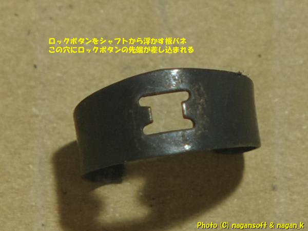 ツバが、シャフトからボタンを浮かす板バネの穴で受け止められるのです。
