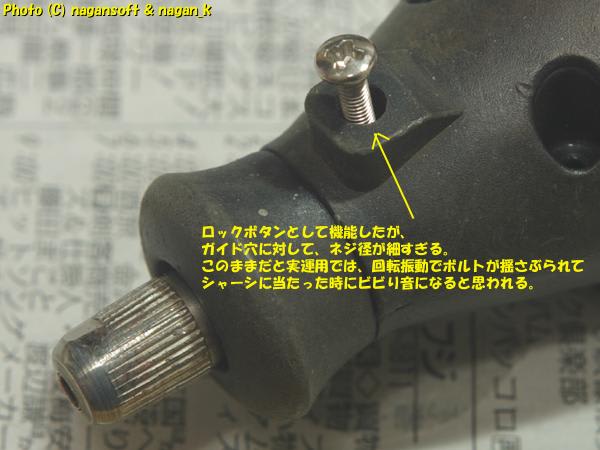 このままだと、運用中のリューターの振動でこのロックボタン替わりのボルトがブルブルと暴れるじゃないか。