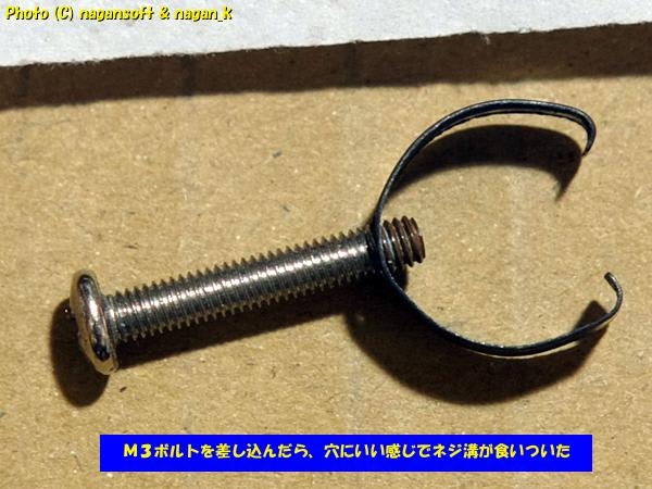 そうしたら、M3のボルトがちょっときつめに板バネの穴に食いつきました。