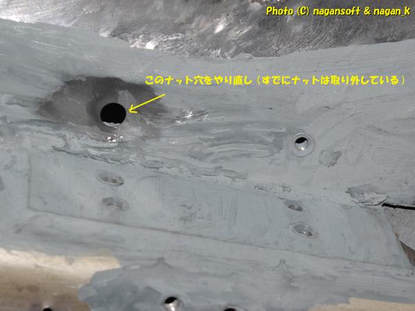 ダメにしたナット部分をリューターでほじくって撤去しました。