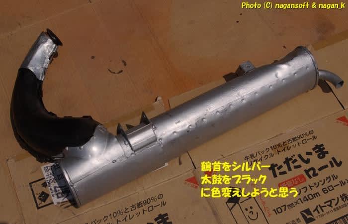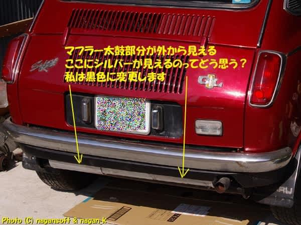 マフラーの太鼓部分ですが、車体後ろから見えるのよね。