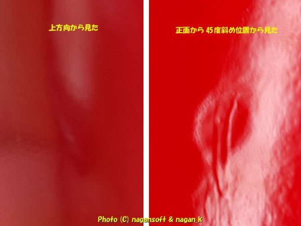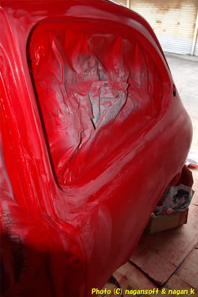金赤色の塗装肌は、下手くそが仕事しているのが餅肌ではなく、薄いゆず肌に仕上がってます。(最近の車の塗装仕上げに似通っている状態です)