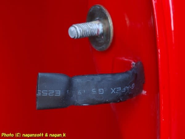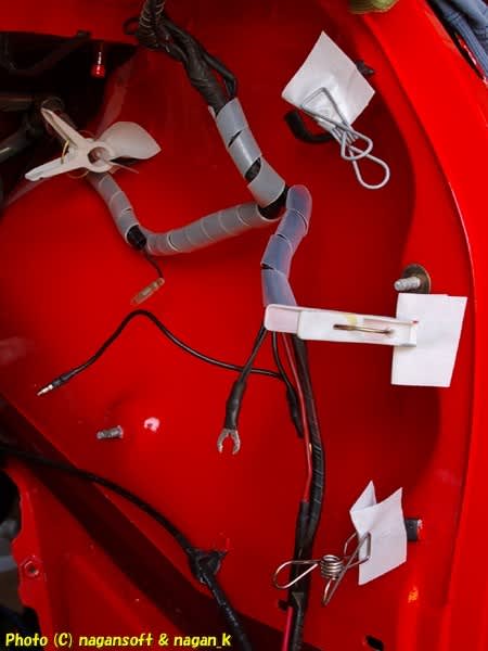エンジンルーム内の配線を押さえるクリップに、熱収縮チューブを被せました。もちろんハンダ鏝で炙って縮めてフィットさせます。