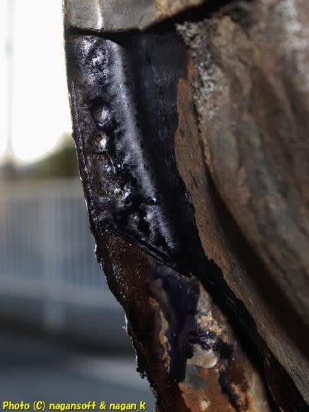 その合わせ隙間に錆転換剤(レノバスプレー)を吹き込みます。
