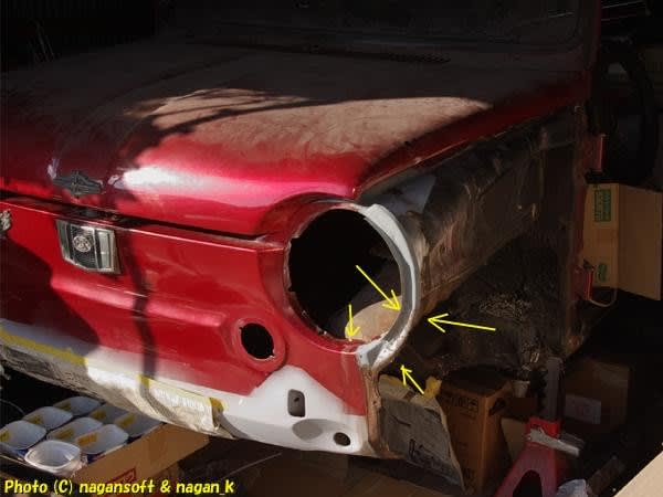 フェンダー内側とトランク側の両面から錆が進んでいるんです。