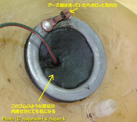 縁の金具からアース線のようなものが付いていたのですが、これは水洗い中に根本からサクッと朽ちました。