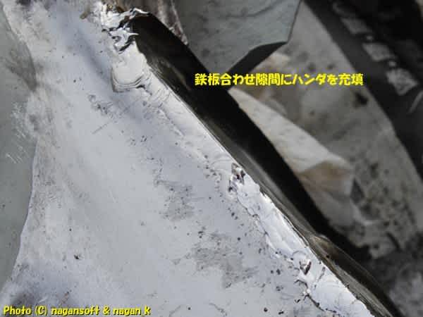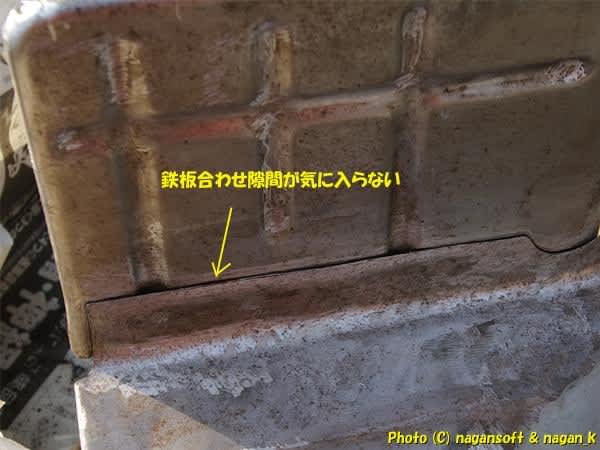垂直に鉄板がスポット溶接で貼り付けられているのですが、その隙間が気に入らないのよ。