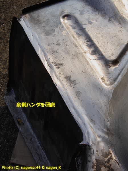 車体外側は車検の時に検査官の目に触れるので、接合部分が汚いままだとちょっとイヤかなと思い、余剰ハンダを研磨しました。