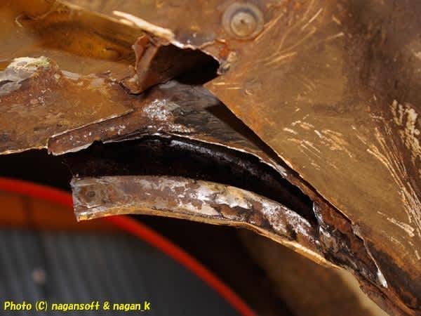 下辺はフェンダーエプロン端っこ先端の飛び出し部分になります。ついては吹きっさらしです。