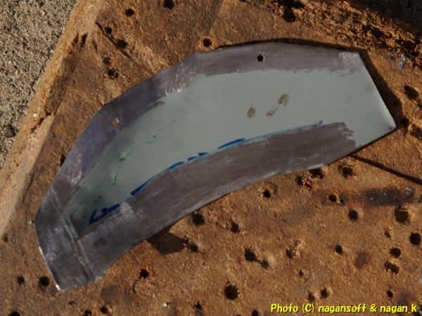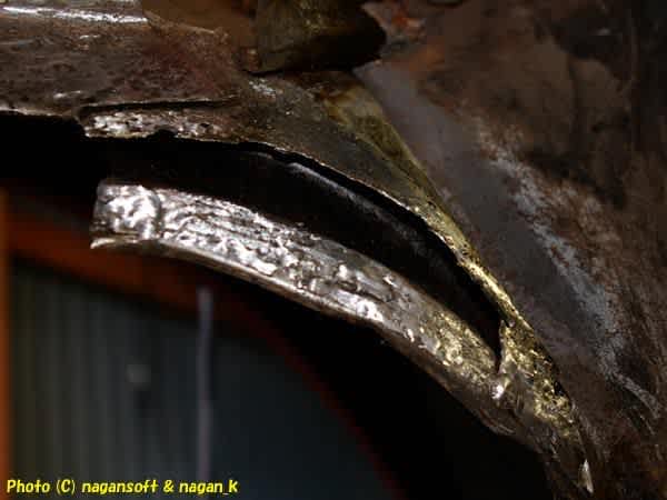 パッチ鉄板を切り出して手揉みしながら現物合わせ3D整形です。