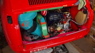車弄り、スバル R-2 (360cc) R-2君、エンジンルームエプロン取り付け 本日のスバル弄りは2時間30分でした。まずは昨日の作業残りからです。セルモーター先端の配線をスパイラルチューブでまとめました。本日のメインですよ。倉庫奥の秘宝棚より毛布に包まれたやつをひっばりだします。エンジンルーエプロンです。このエプロン... 2020.04.30 車弄り、スバル R-2 (360cc)