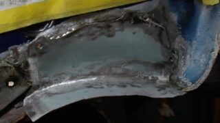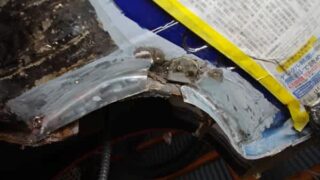 車弄り、スバル R-2 (360cc) R-2君、運転席床手前側の錆穴切断箇所その2に鉄板接ぎ-1日目 本日のスバル弄りは3時間でした。運転席床の錆切除穴その2を攻略です。車体裏からの写真です。今回は接ぎ箇所が平面ではないのよね。難易度があがります。作業手順は昨日にした「R-2君、運転席床手前側の錆穴切断箇所その1に鉄板接ぎ」と一緒です。まず... 2020.11.22 車弄り、スバル R-2 (360cc)