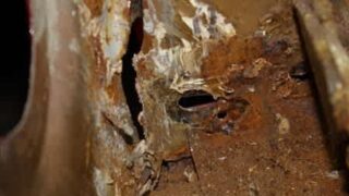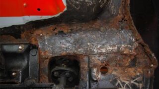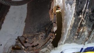 車弄り、スバル R-2 (360cc) R-2君、トランク床をごそごそ錆屑掃除1日目 本日のスバル弄りは3時間でした。前回に右前足回りを外しました。足回りを外してから車体フレームというか、右前フェンダーエプロン辺りを打検に揺すりにと確認したところフレームが崩壊する気配はなさそうです。いやー、フェンダーエプロンがグサグサだった... 2020.11.29 車弄り、スバル R-2 (360cc)
