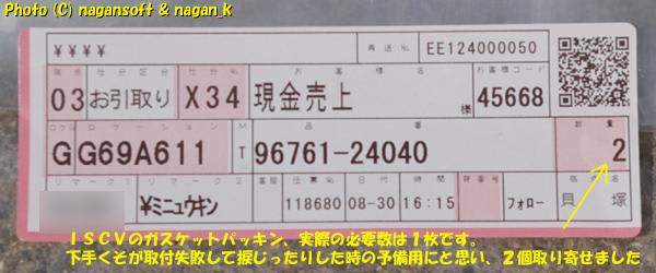 ISCVのパッキンは必要数1個なのですが、私が整備技術のない未熟者なので、もし取り付け時に捻じ込んだりして失敗したときの予備として2個取り寄せしました。