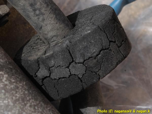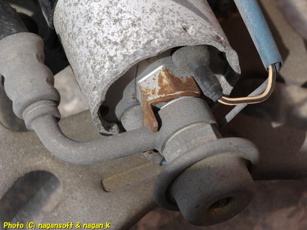 ポンプ本体とブラケットとの組み込み部分にも振動対策のゴムブッシュがあり、それも痩せてます。