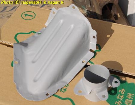 「エンジンルームとフロアーとの境目ヒーターダクト」と「ガソリンタンク給油口が通る穴をカバーしている鉄仮面」です。