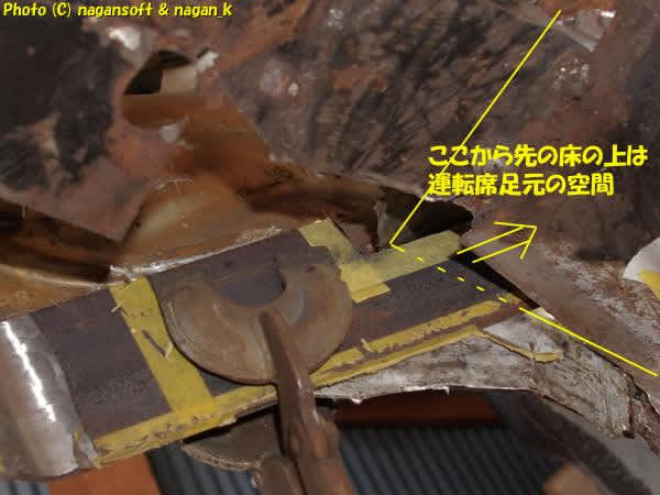 室内へ突き刺さる直前で鉄板を切り捨てるというのが仕上がりも綺麗なんだろうと思いますが、強度のことを考えると運転席足元側面の鉄板まで伸ばして接続したいのです。