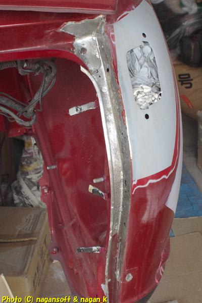 このままでは駄目なので、錆穴部分を大胆に切除してみました。