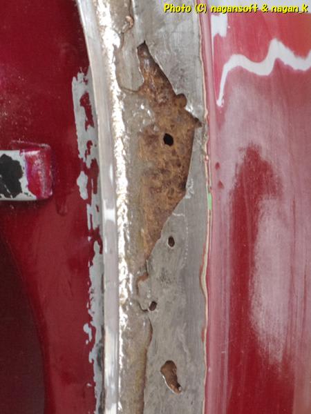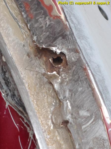 側面がどうしたものかと思うぐらい錆穴がズボズボ貫通です。