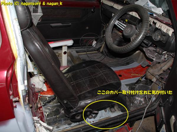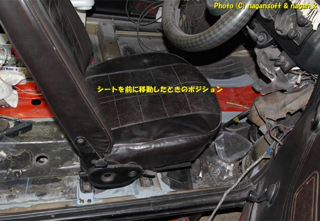 そうそう、この運転席ですが、痴呆親父によって移動しないようにシートレールが点付け溶接されていたんですよ。その溶接部分はかなり昔にハンマーでしばいたら簡単にすっ飛びました。つまり、しっかり溶接されていなかったという、ある意味ラッキーでした。