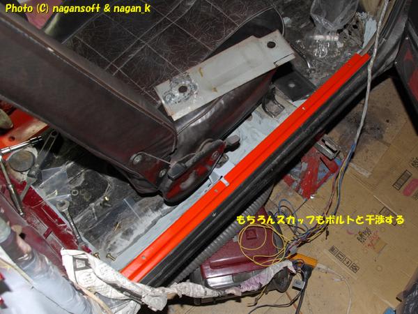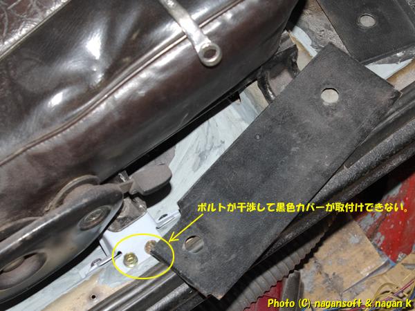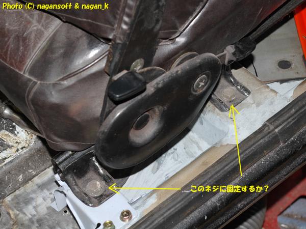 私のスバルは、シート固定ボルトを受け付けるナット部分が斜めに溶接されているのです。