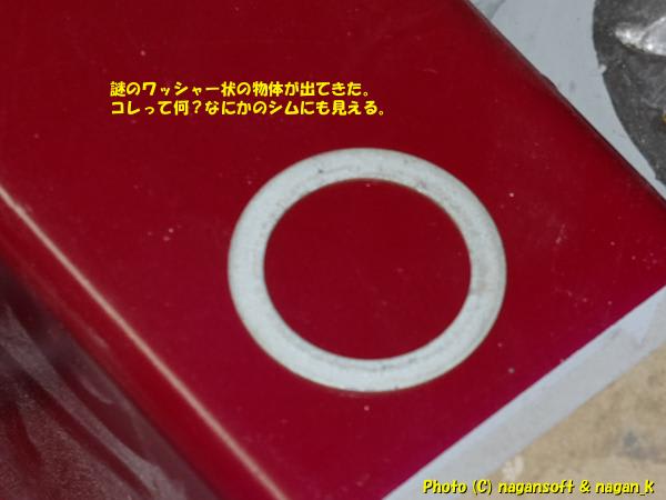 次の謎です。どこの部品かわからないのですが大きめのワッシャーのようなものが現れました。意外に薄いのでシムのようにも見えます。