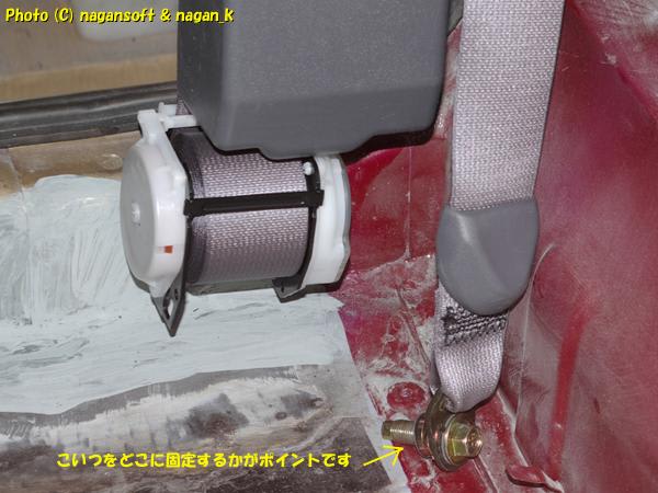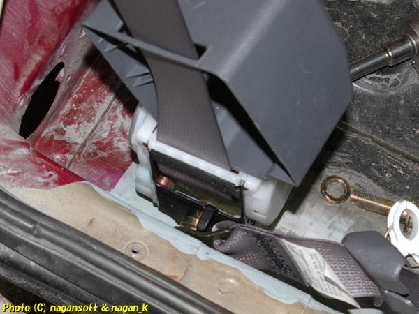 シートベルト固定のボルト穴は、シートベルト固定用に車体に設けられている穴か、または、シートレールを固定しているボルト穴しか使ってはいけないというのがポイントです。