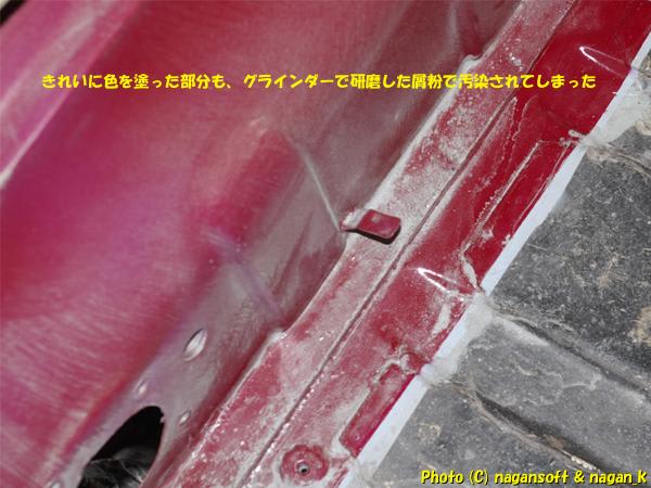 せっかく色を塗った部分も、グラインダの屑粉に汚染されてます。