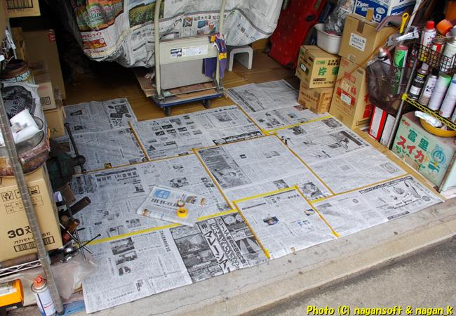 新聞紙を貼っていくだけですが、地味に時間がかかってますよ。