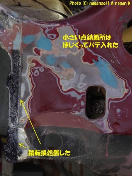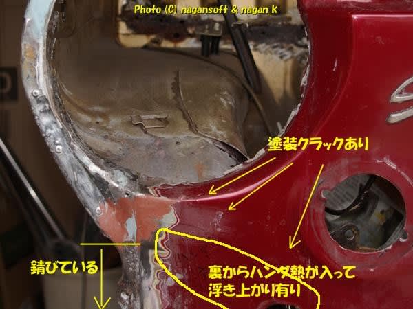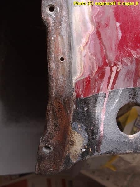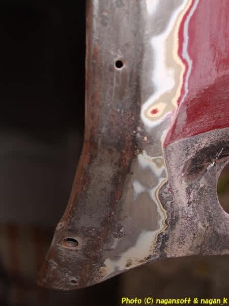 塗装クラックの下はしっかりと点錆が巣くっていました。
