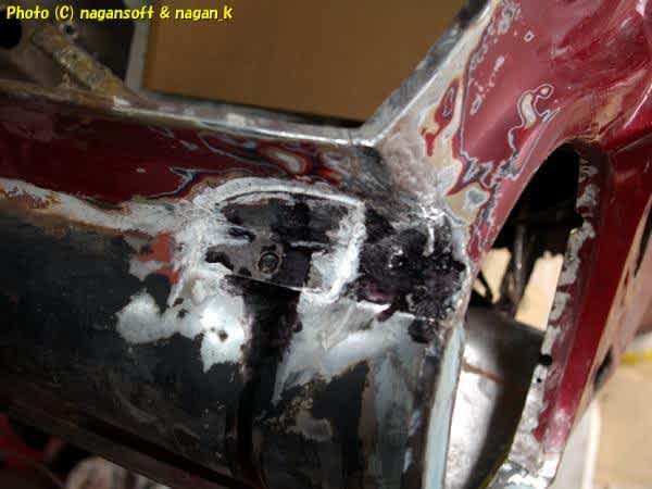 フェンダー合わせ部分の錆はにきび肌になってました。