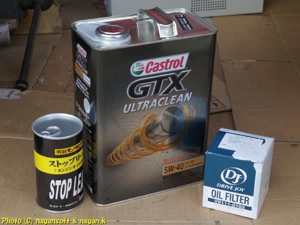 - エンジンオイル交換、オイルカートリッジ交換、オイル漏れ防止添加剤投入