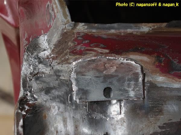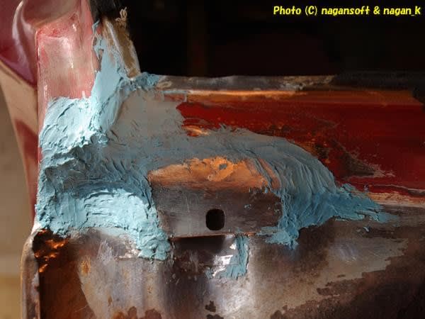 「トランク縁立ち上がり角部分の錆穴」も塞ぎましたよ。