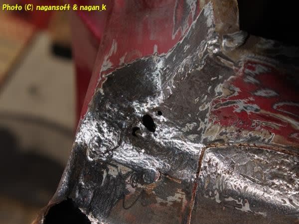 なんとかこのままで裏からパッチ鉄板を当てて薄くコーキングを入れてみるとかを模索します。
