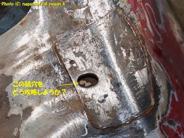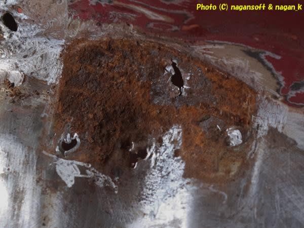 錆穴の周りに赤錆が盛大に広がっているじゃん。
