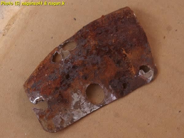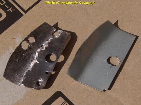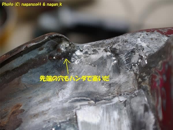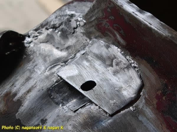 ということで凹み部分の穴塞ぎで厚みのある鉄板は使えませんよ。かといってハンダ肉盛りだけで埋めるというのも残っている鉄の厚みを考えると微妙なのよね。