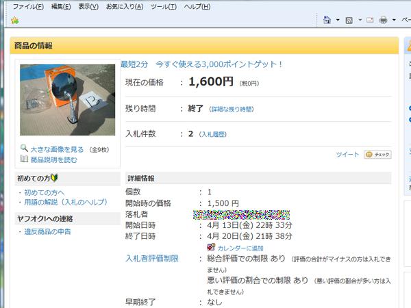 まあー、きっと右ミラーが欲しくてしかたない人が落札されて大喜びしているんだろう。