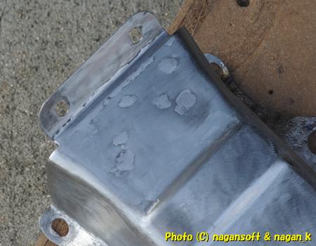 スポット溶接のへこみ部分などをハンダで埋めました。