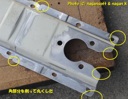 角の尖がった部分を削りました。
