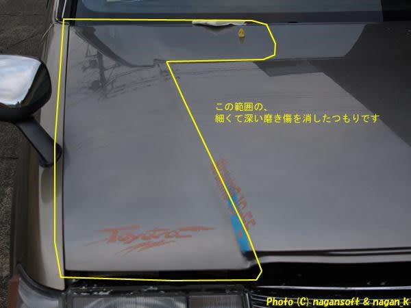 ボンネットがそれなりに綺麗になってきているのだが、細くて深い磨き傷がまだまだあるのです。