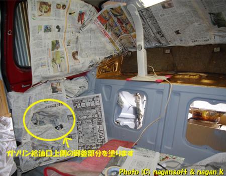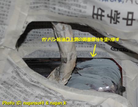 そして、ガソリン給油口上側の御釜部分を錆び転換剤塗ってそのまま放置しているのを見つけた。