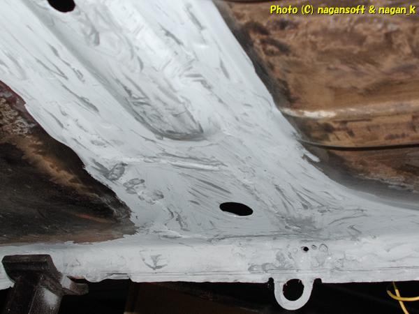 車体裏側に錆止め塗料(エポローバル)を筆塗りしました。