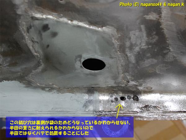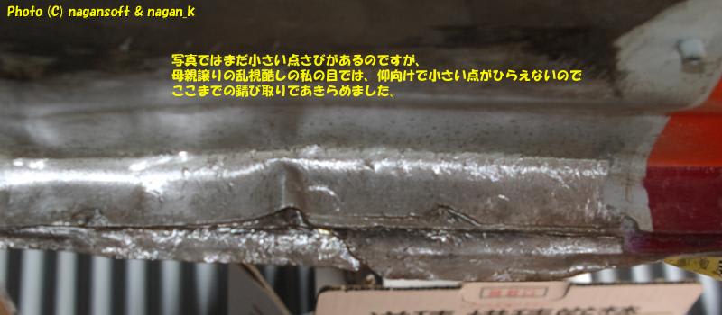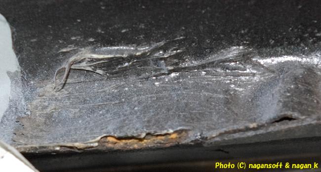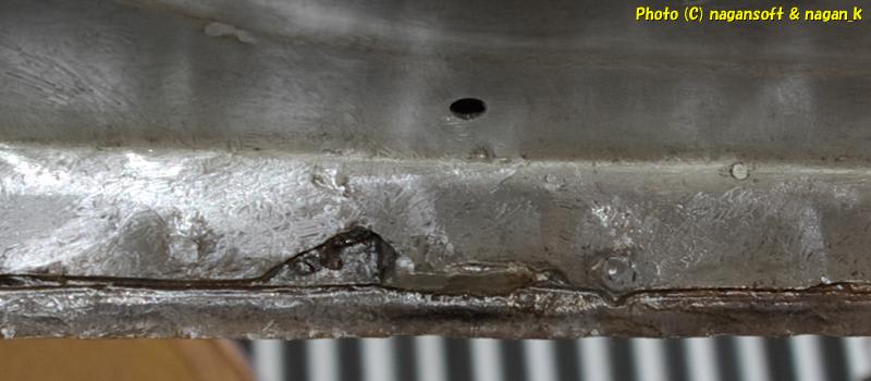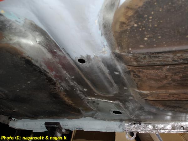 「右後ろサイドシルの車体裏内側」ですが、よーくみたら、まだ点錆があります。もちろん写真だとばっちり写っています。