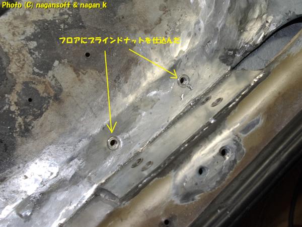 車体裏側がキレイになったので、フロアにブラインドナットを処置できるようになりました。